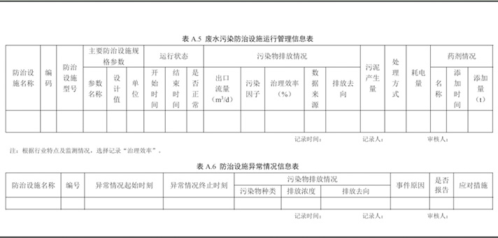 廢水治理設施環(huán)境管理臺賬主要包括廢水防治設施運行狀態(tài)、主要藥劑添加情況、污染物排放情況等內(nèi)容。當發(fā)現(xiàn)污染物排放超標等異常情況時,應當立即采取措施消除、減輕危害后果,如實記錄并及時報告生態(tài)環(huán)境主管部門。廢水污染防治設施運行管理臺賬記錄、防治設施異常情況信息表可參考以下模板: